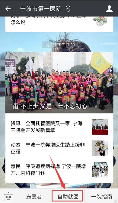 1、 关注官方微信公众号“宁波市第一医院”